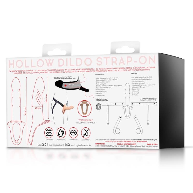 ACTION — Arnés Strap-On con Dildo Hueco Silicona Premium Talla S. Precio especial La Diabla: 40,46€ (PVP 44,95€).