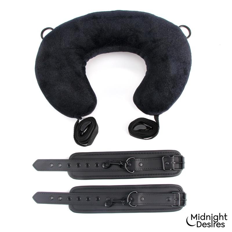 Si lo que quieres es probar nuevas posturas con tu pareja, que mejor que un buen set de restricciones. Este set de restricciones cuenta con esposas para las muñecas y para los tobillos, pero además cuenta con un cojín de sujeción para el cuello. Esto es ideal para que probéis nuevas posturas y viváis nuevas emociones de manera sencilla, cómoda y satisfactoria.