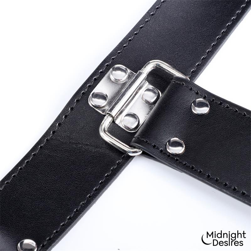 Tanto las esposas para los antebrazos como las esposas para los hombros son totalmente ajustables con hebillas. Todas las partes de este set son en cuero vegano, con detalles elegantes. Las hebillas y los remaches en color plata le dan un toque de lo más erótico.